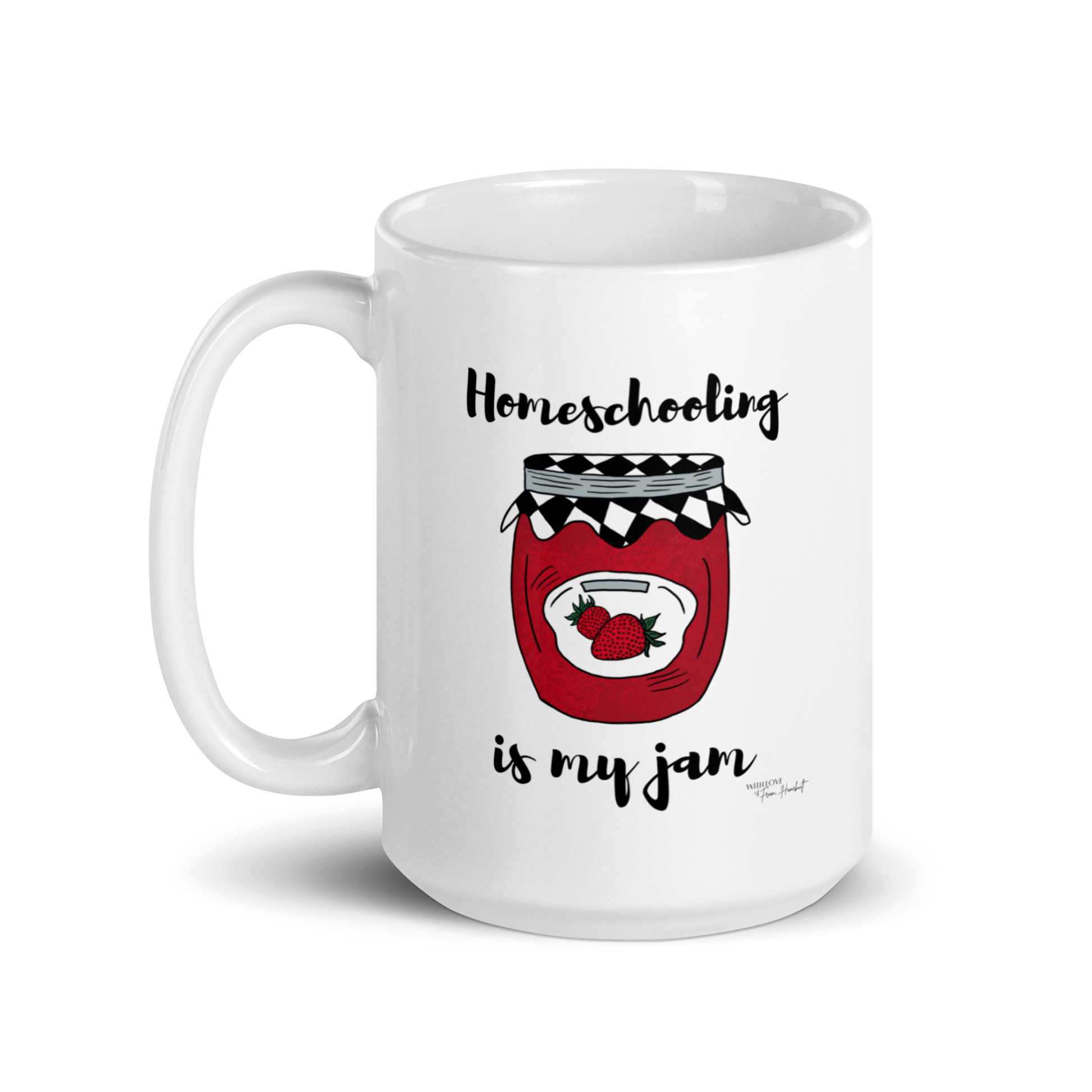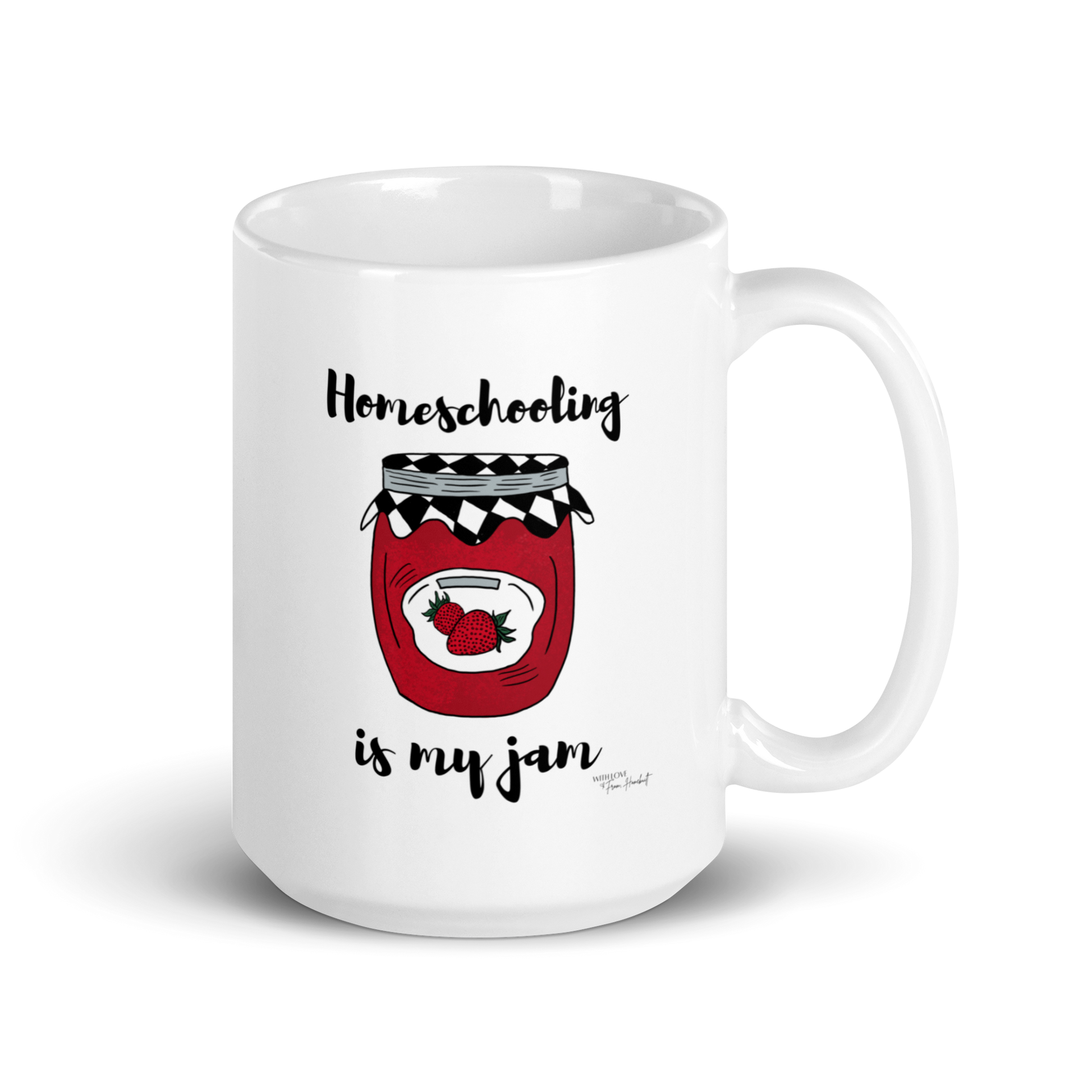 Start your day on a high note with our delightful 15 oz mug, adorned with the playful phrase "Homeschooling is My Jam" and an adorable jam jar illustration. Each mug is lovingly hand-drawn by With Love From, Homebuilt, making it a unique addition to your homeschooling routine. Whether you're sipping coffee during lesson planning or enjoying a cozy tea break, this mug is sure to add joy and a dash of humor to your day.