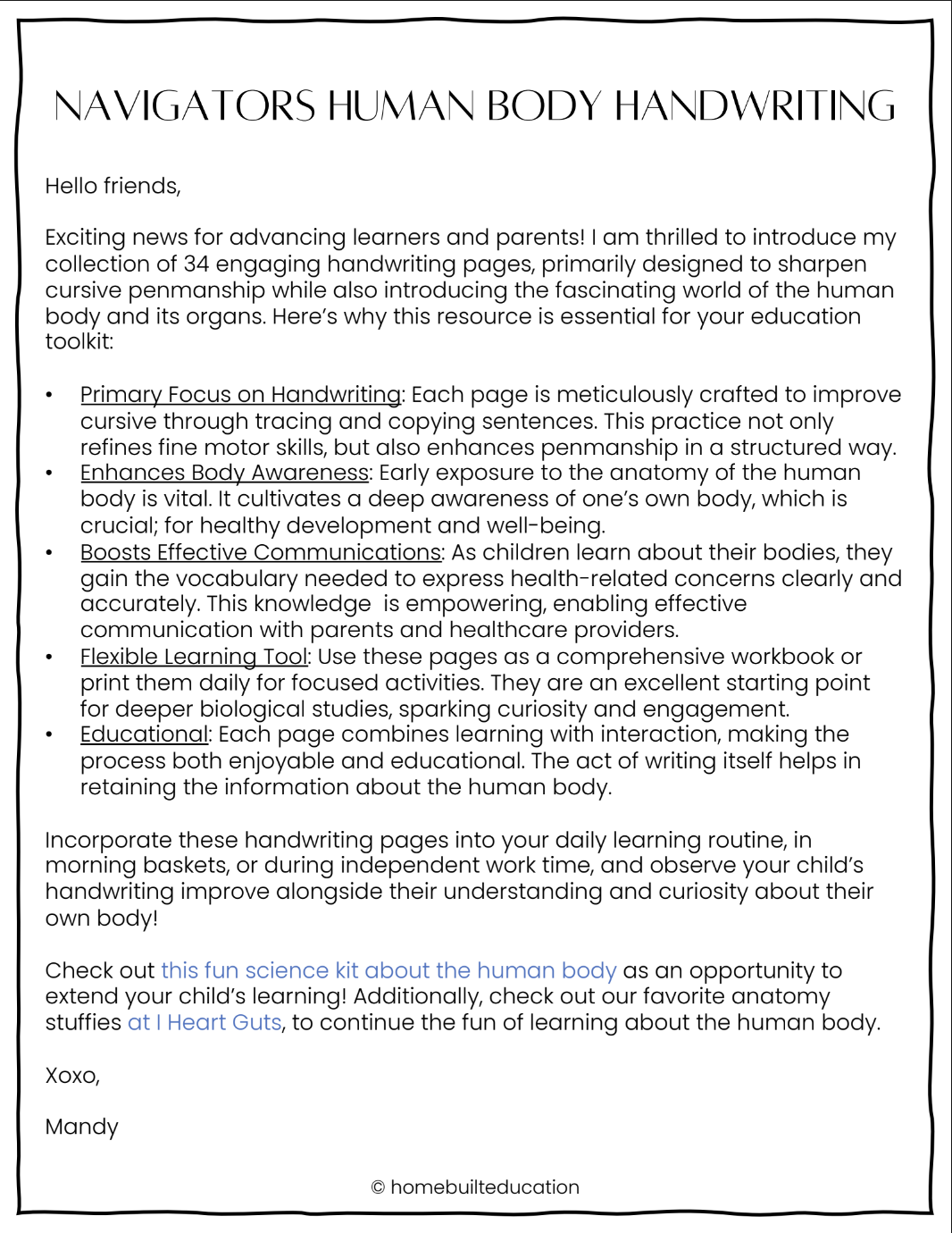This bundle is a great tool for boosting cursive handwriting skills and deepening knowledge of human biology, offering a comprehensive and engaging educational experience for older children.