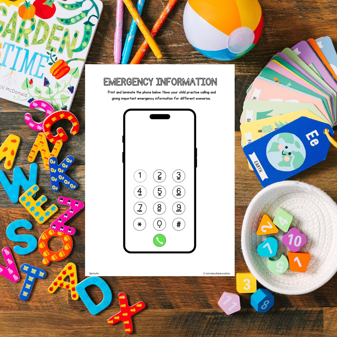 Emergency Information: Practice for kids to learn their own basic details, name, phone, and what to do in an emergency situation.