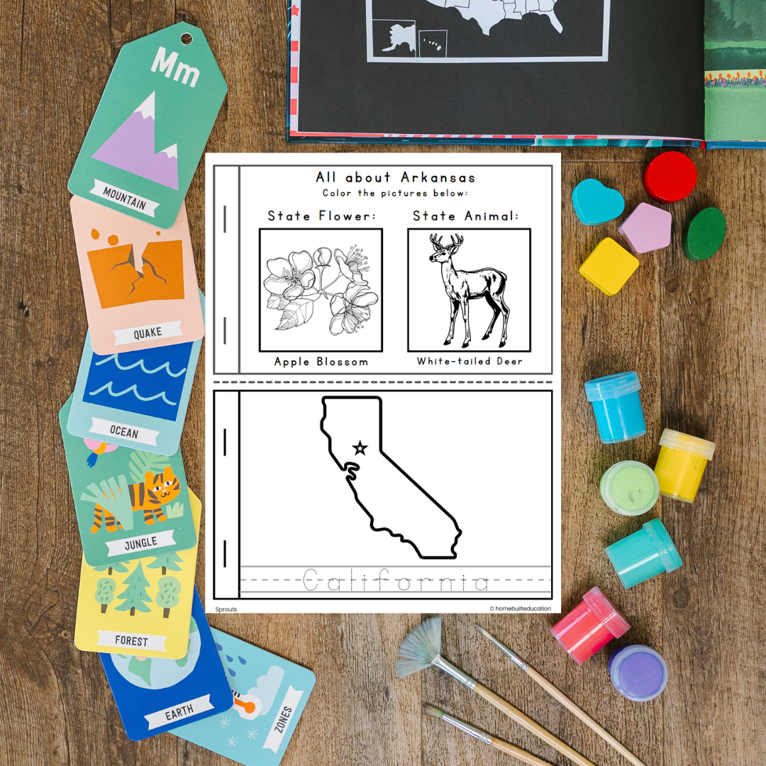 Dive into geography with this 116-page bundle, tailored for your littlest learners to embark on an exciting journey through the United States. This bundle includes engaging mini books, each page crafted to introduce states and capitals in a fun and accessible way. Activities focus on early literacy, symbol recognition, and simple geography concepts like state shapes and locations. It’s perfect for any morning basket, offering a playful introduction to America’s geography with no prep needed.